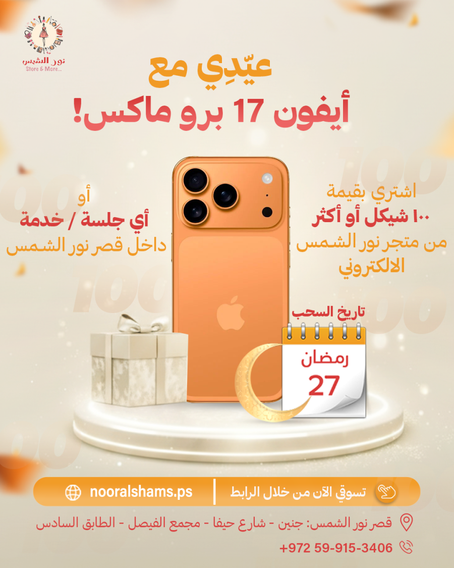 📱 اشتري بقيمة 100 شيكل وادخلي السحب على أيفون 17 برو ماكس!