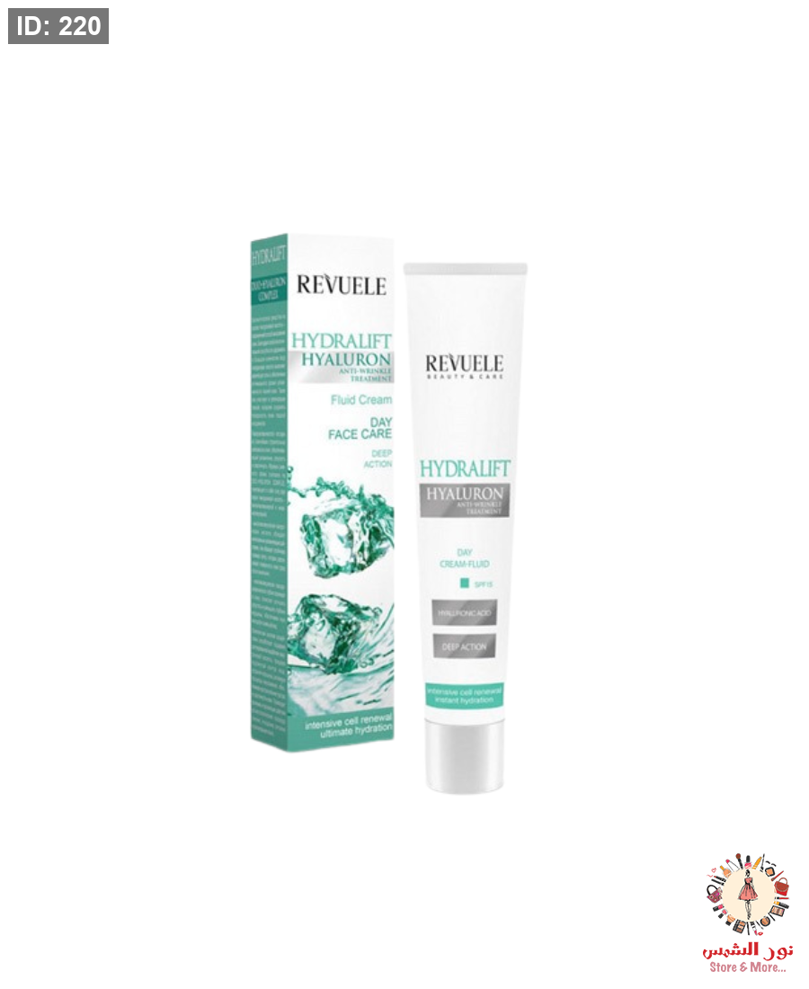 كريم النهار Revuele Hydralift Hyaluron Day Cream-Fluid SPF 15 يمنح بشرتك الترطيب العميق والوقاية اليومية من علامات التقدم بالسن. غني بـ حمض الهيالورونيك الذي يساعد على:
