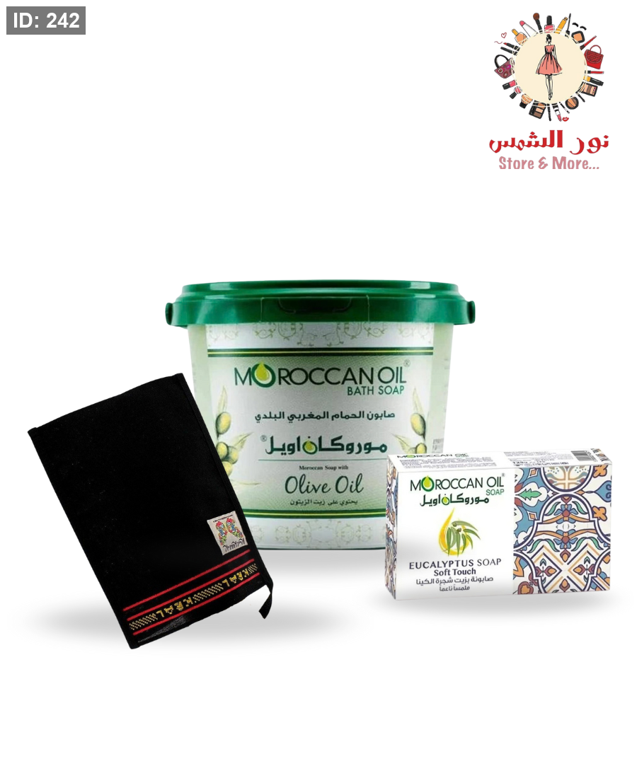 بكج الحمام المغربي للعناية بالجسم غني بمكونات طبيعية تستخدم وقت الحمام لتنعيم وتفتيح و تنظيف الجسم