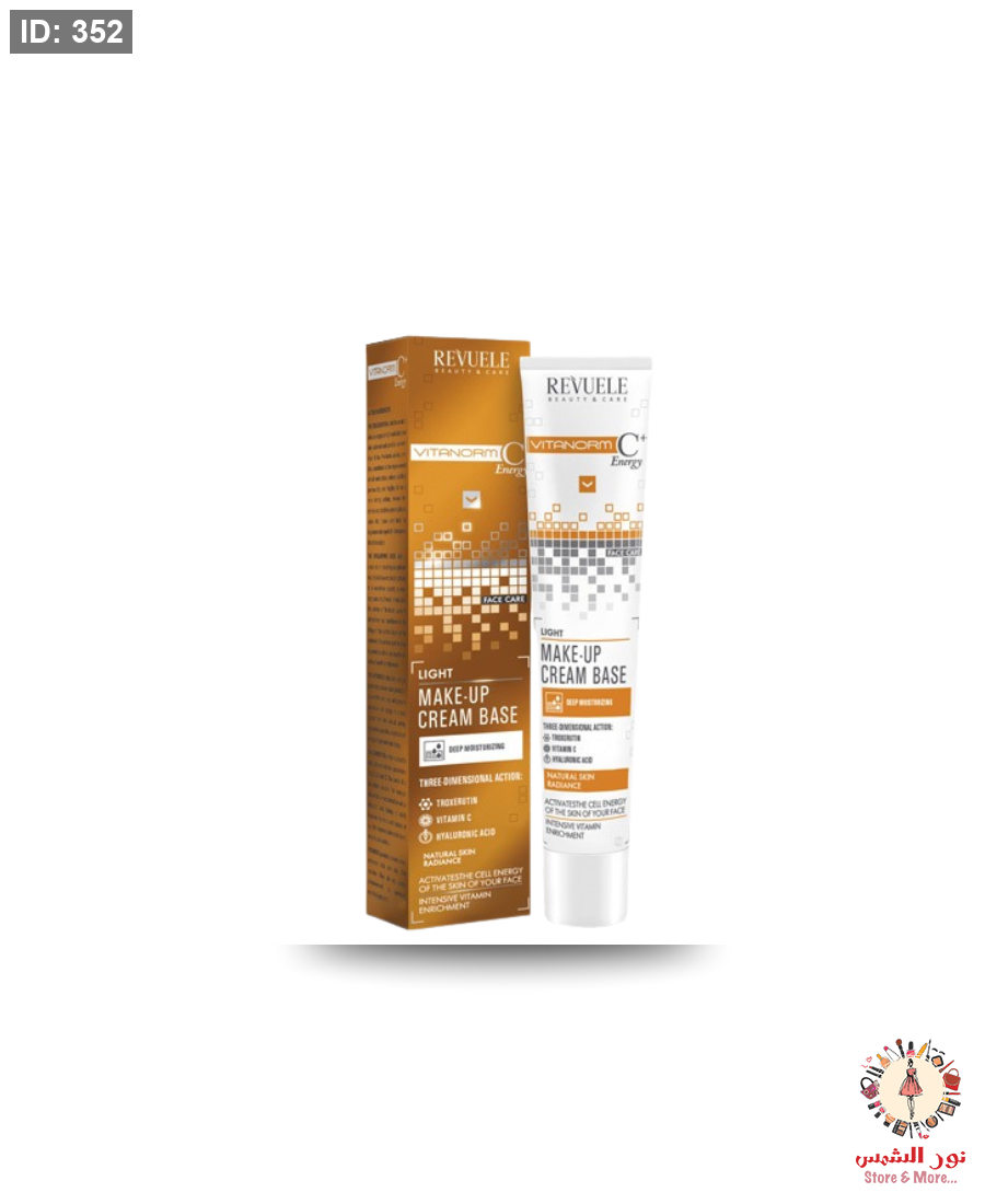 كريم الأساس Revuele Vitanorm C+ Energy Make-Up Cream Base بتركيبته الغنية بفيتامين C يمنح البشرة مظهراً مشرقاً ومتجانساً، مع ترطيب طويل الأمد ولمسة ناعمة مثالية قبل المكياج: