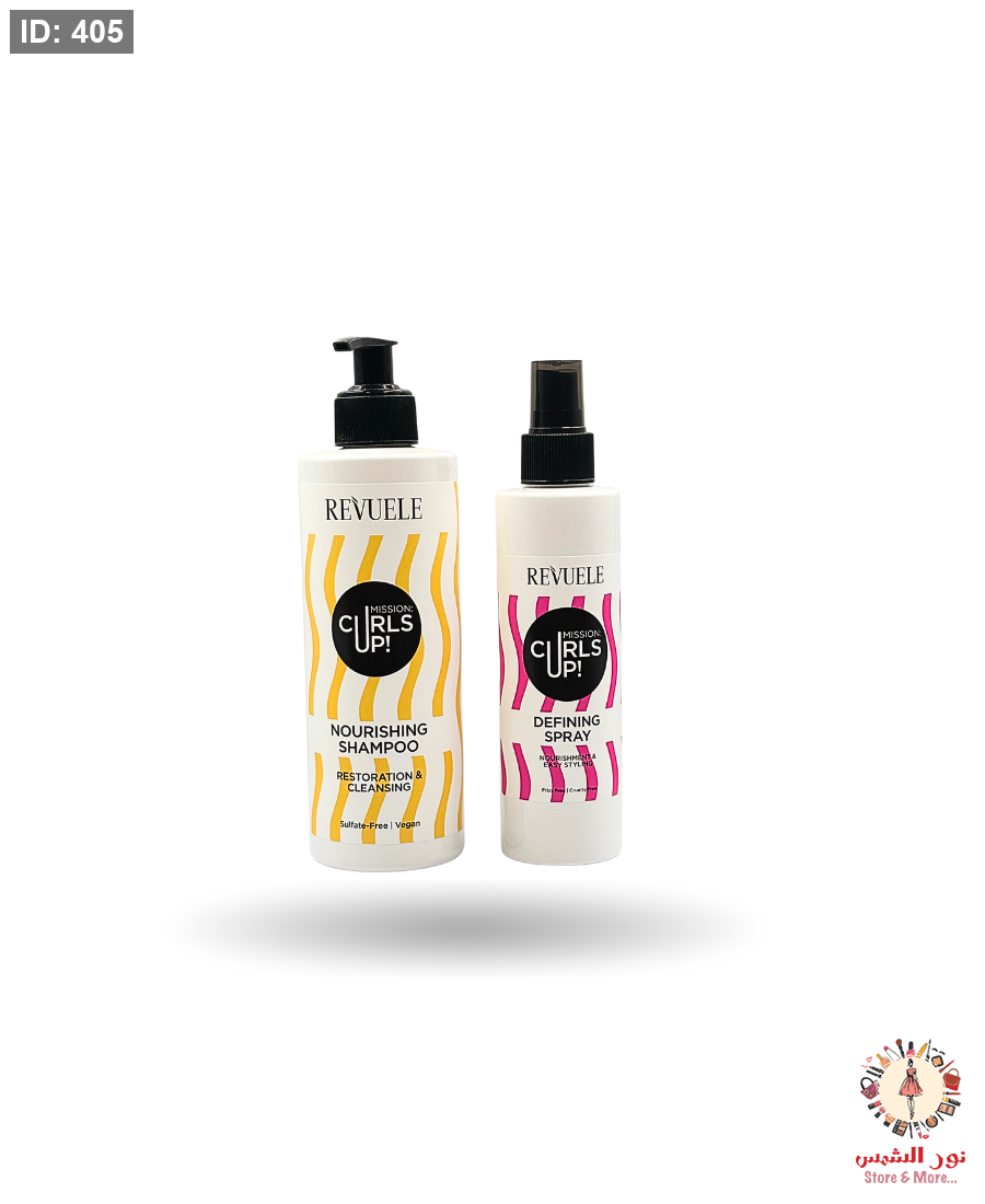 احصلي على تموّجات مثالية وشعر حيوي مع Revuele Curls Up! Set المكوّن من شامبو مغذٍ وسبراي محدد للكيرلي، مصممان خصيصًا لتغذية الشعر المموج والمجعد دون إثقاله.