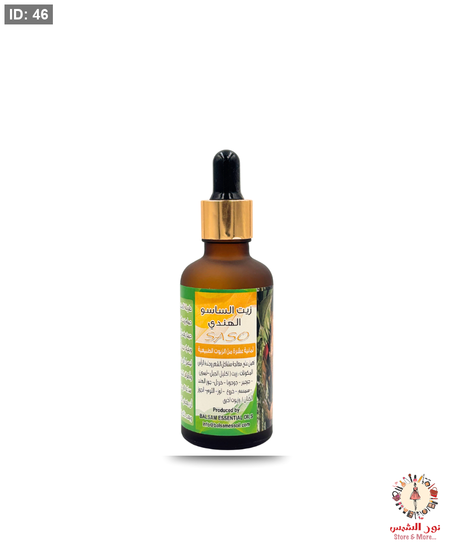 زيت الساسو الهندي مكون من عدة زيوت طبيعية بمقادير معينة بداخل عبوة تعتبر الأولى في فلسطين لتغلبها على جميع مشاكل الشعر الصعبة اعطا انبات جديد للشعر وتعبئة الفراغات اعطى تقوية وتطويل للشعر الضعيف حل مشكلة القشرة بجلدة الراس والمفاجئة التي حصلنا عليها علاج مرض الثعلبة بشكل كامل ليعود الشعر لوضعة الطبيعي وحتى من يعانون من تساقط مستمر مجرد الاستخدام سينتهي التساقط بشكل فوري انه فعال وفعال جدا