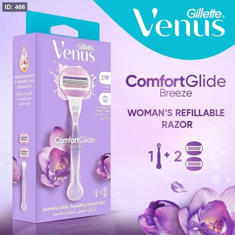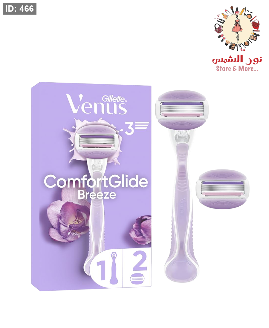 شفرة حلاقة نسائية من Gillette Venus اسمها Venus Comfortglide Breeze. وهي مخصّصة لإزالة الشعر بسهولة مع ترطيب البشرة. 🌸
